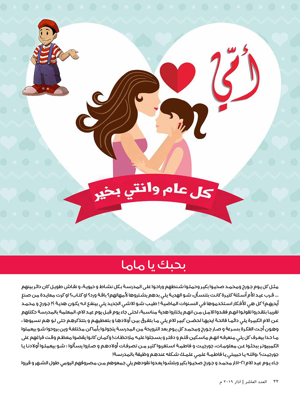 بحبك يا ماما | العدد العاشر - آذار ٢٠١٩م | صفحة نخلة الشبر